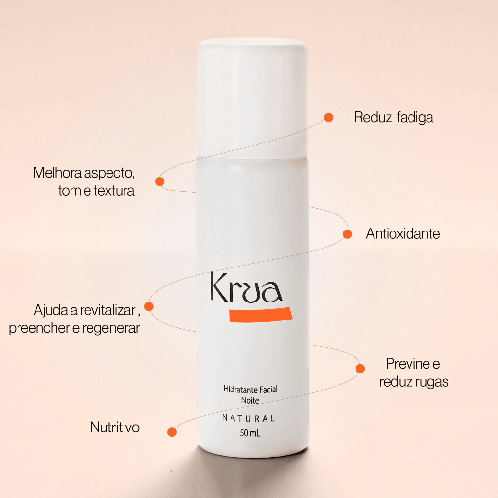 O Hidratante Facial Noite regenera a pele enquanto você dorme. Com uma fórmula líquida composta por 98,7% de ingredientes naturais, ele combina ativos antienvelhecimento, regeneradores, reparadores e antioxidantes para nutrir, revitalizar e combater o aspecto de fadiga.