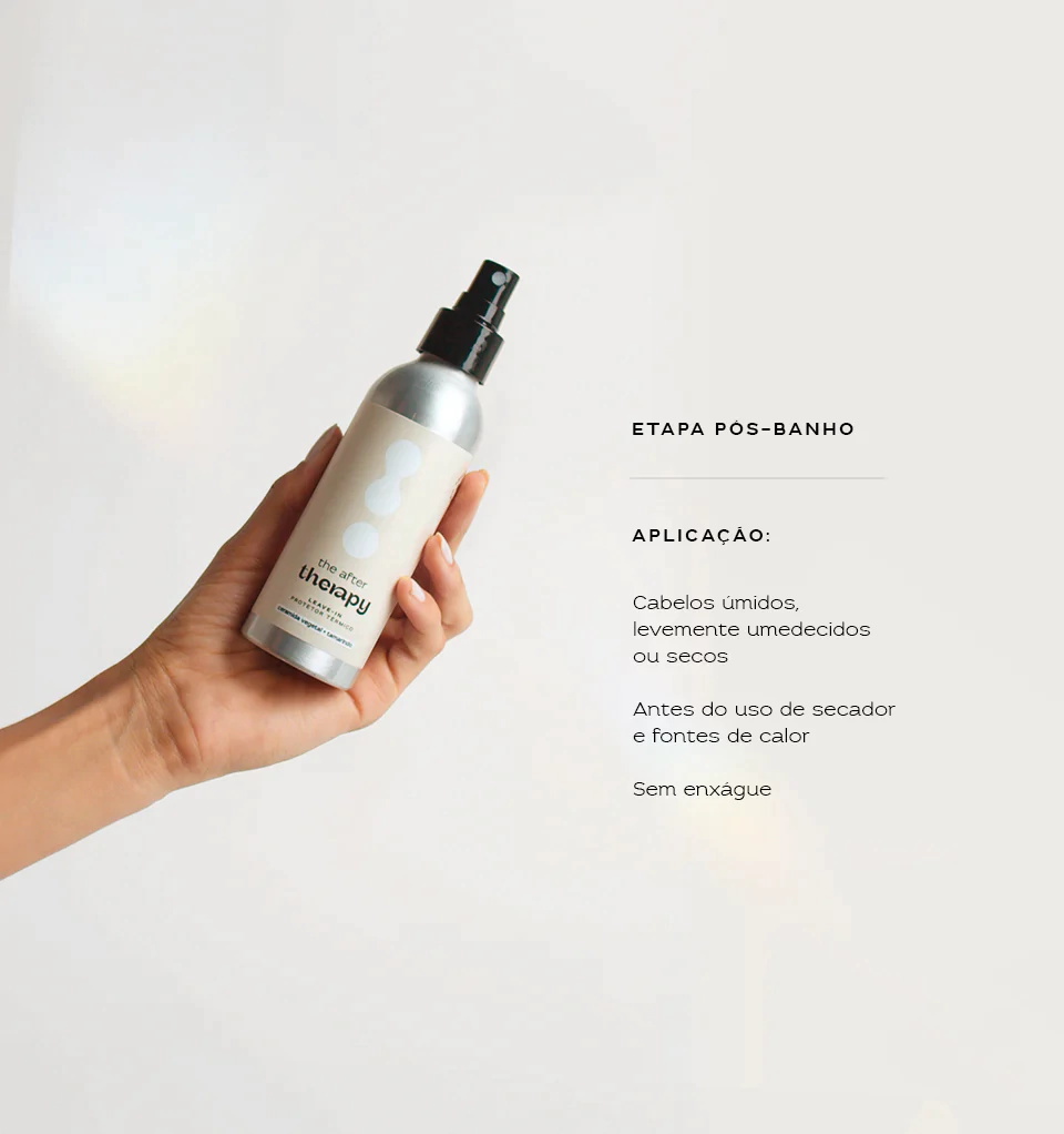O leave-in The After Therapy alinha os fios, define as mechas e melhora visivelmente o frizz dos cabelos. Seus ativos antioxidantes e formadores de filme ainda protegem os fios, principalmente contra fontes de calor como secador, chapinha e babyliss, para uma finalização hidratante de alta performance.