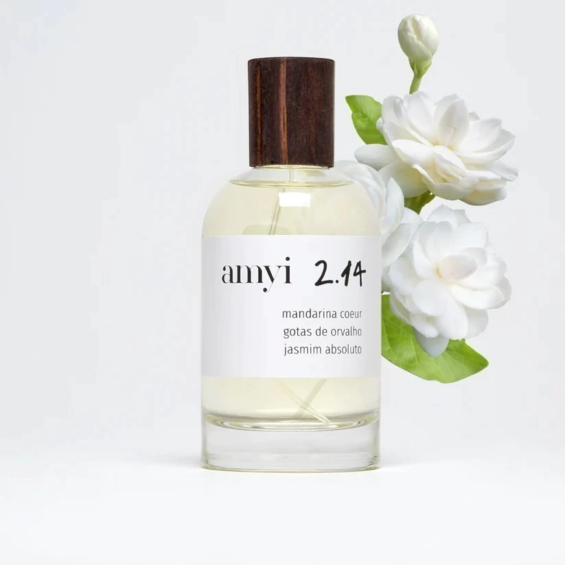 Amyi 2.14 é uma fragrância que se inicia com a suculenta mandarina coeur, evoluindo para um acorde aquoso e orvalhado com nuances florais verdes. A essência se fortalece com o jasmim absoluto do Egito, o mais nobre da perfumaria mundial. A composição é complementada por notas almiscaradas, conferindo uma aura de serenidade.