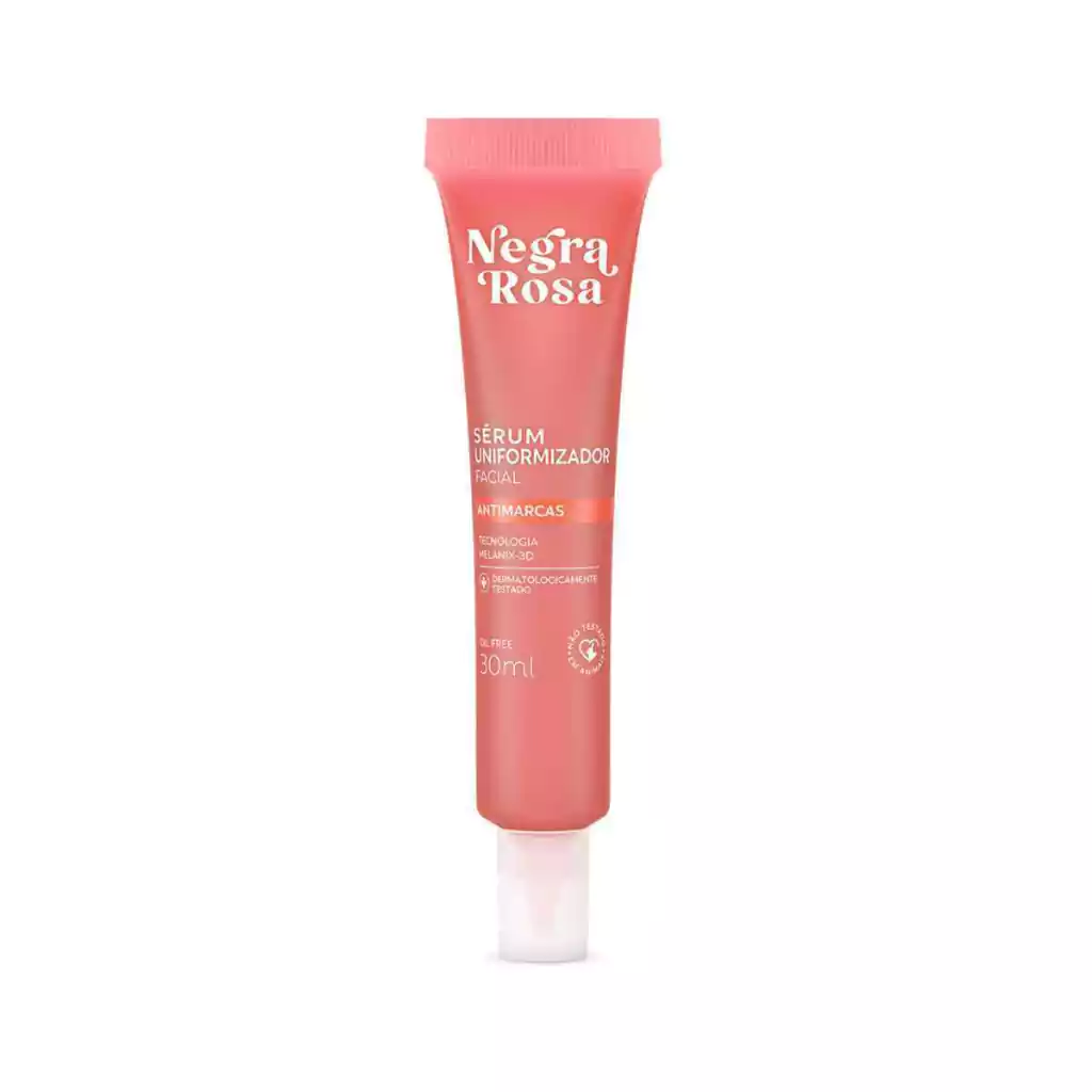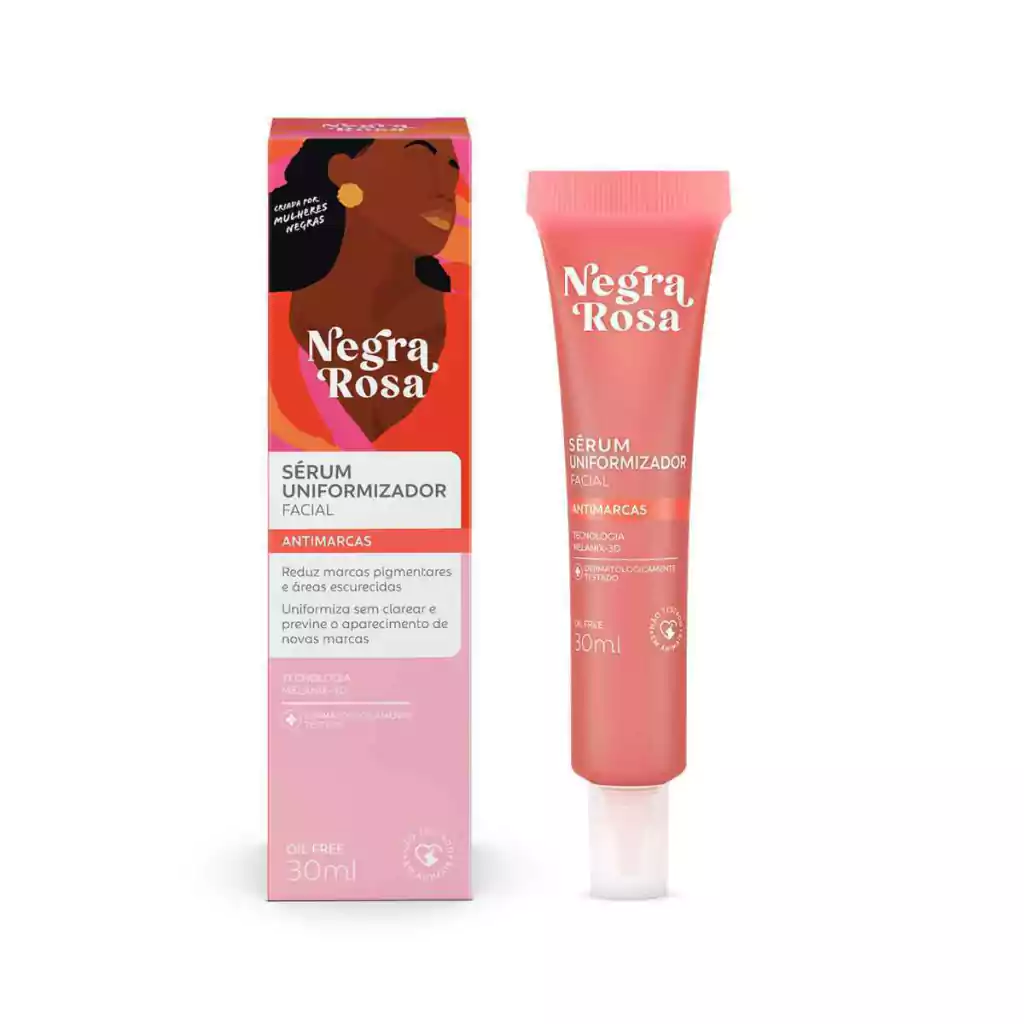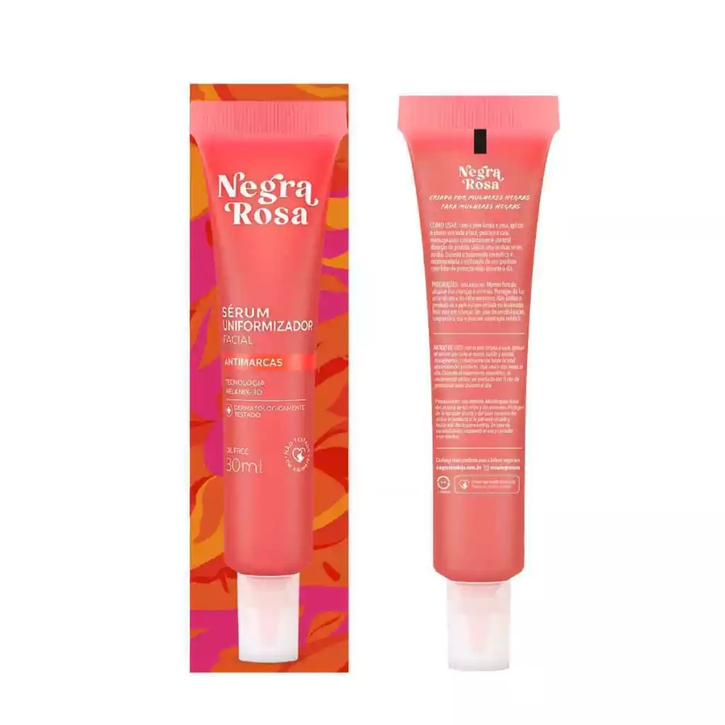 O Sérum Uniformizador Facial Negra Rosa auxilia na redução de marcas pigmentares e áreas escurecidas, uniformizando o tom da pele sem efeito clareador. A tecnologia Melanix-3D tem tripla ação uniformizadora, agindo em diferentes etapas de concentração da melanina. Sua fórmula oil-free ainda possui efeito antioxidante e uma hidratação intensa sem deixar resíduos brancos. Adote este cuidado diário durante 30 dias consecutivos e tenha uma pele luminosa. Recomendado para pele acinzentada com manchas ou cicatrizes.